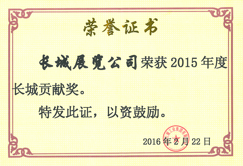 公司榮獲2015年長(zhǎng)城貢獻(xiàn)獎(jiǎng)